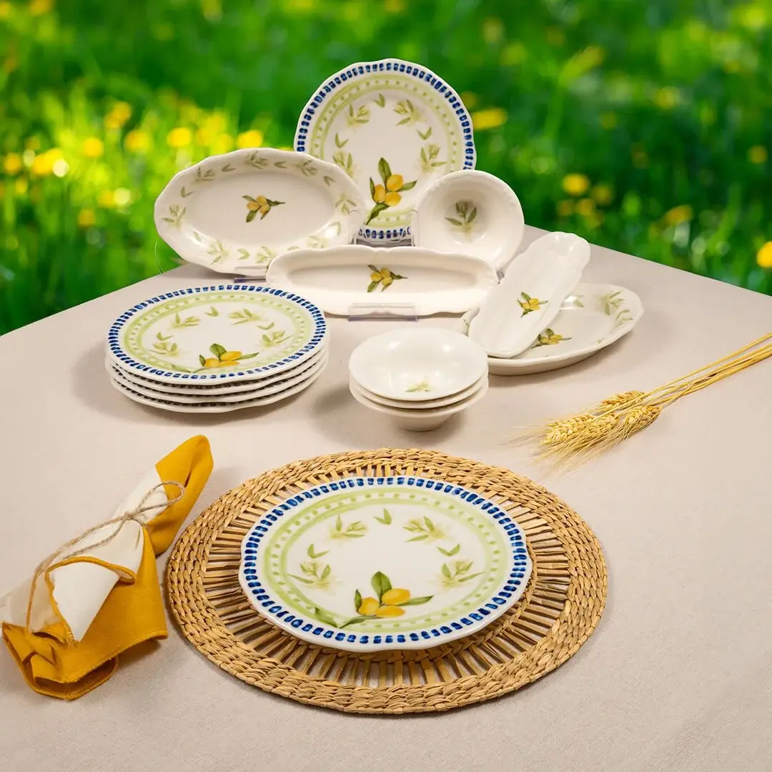 Casa Limone Kahvaltı Takımı, taze limon dallarından ilham alan desenleriyle sofranıza canlılık getirir. Sarı limon tonları, yeşil yaprak desenleriyle buluşarak güne enerjik bir başlangıç yapmanızı sağlar.