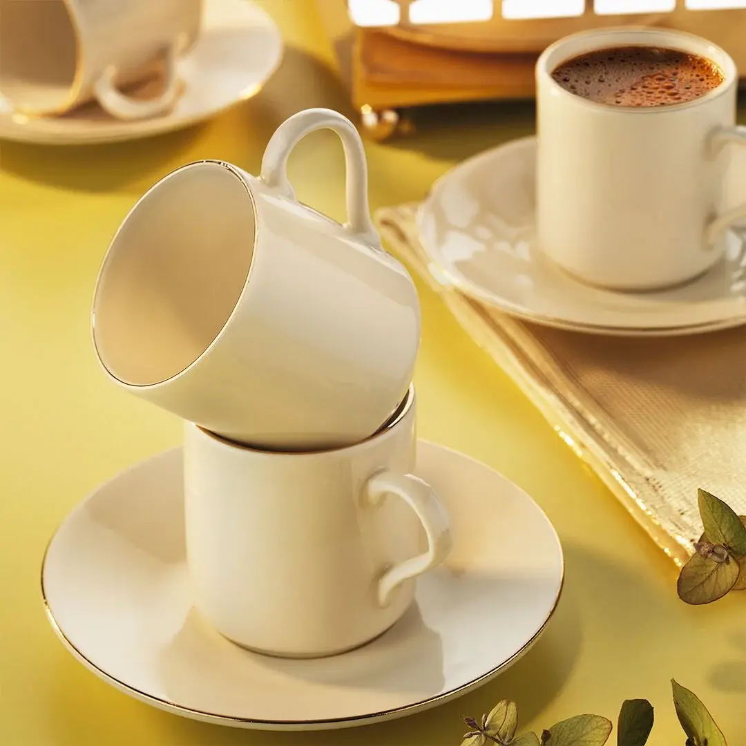 Her bir fincan, 100 cc ölçüsü ile lezzetinizi kucaklar. Altın file detayları, kahvenizin tadını zenginleştirirken, her yudumu unutulmaz bir anıya dönüştürür.