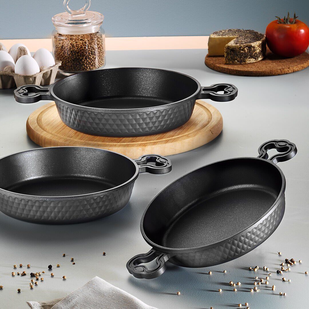 Fecra Bio Casting 3 Parça Döküm Granit Sahan Seti, mutfakta hem şıklığı hem de işlevselliği bir araya getirir. Bu set ile yemek yapmak artık daha kolay ve lezzetli!
