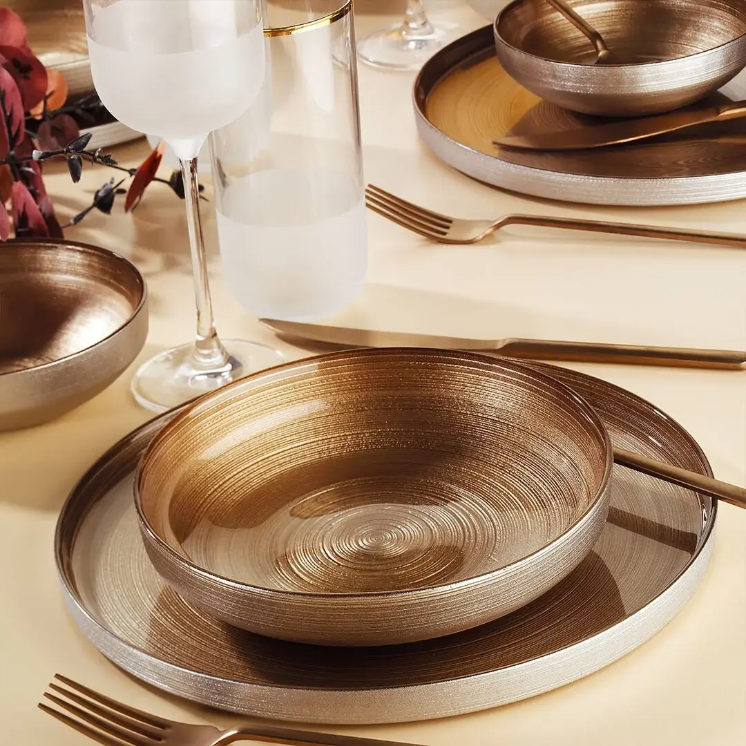 Fecra Circle 18 Parça Yemek Takımı Kahve Altın