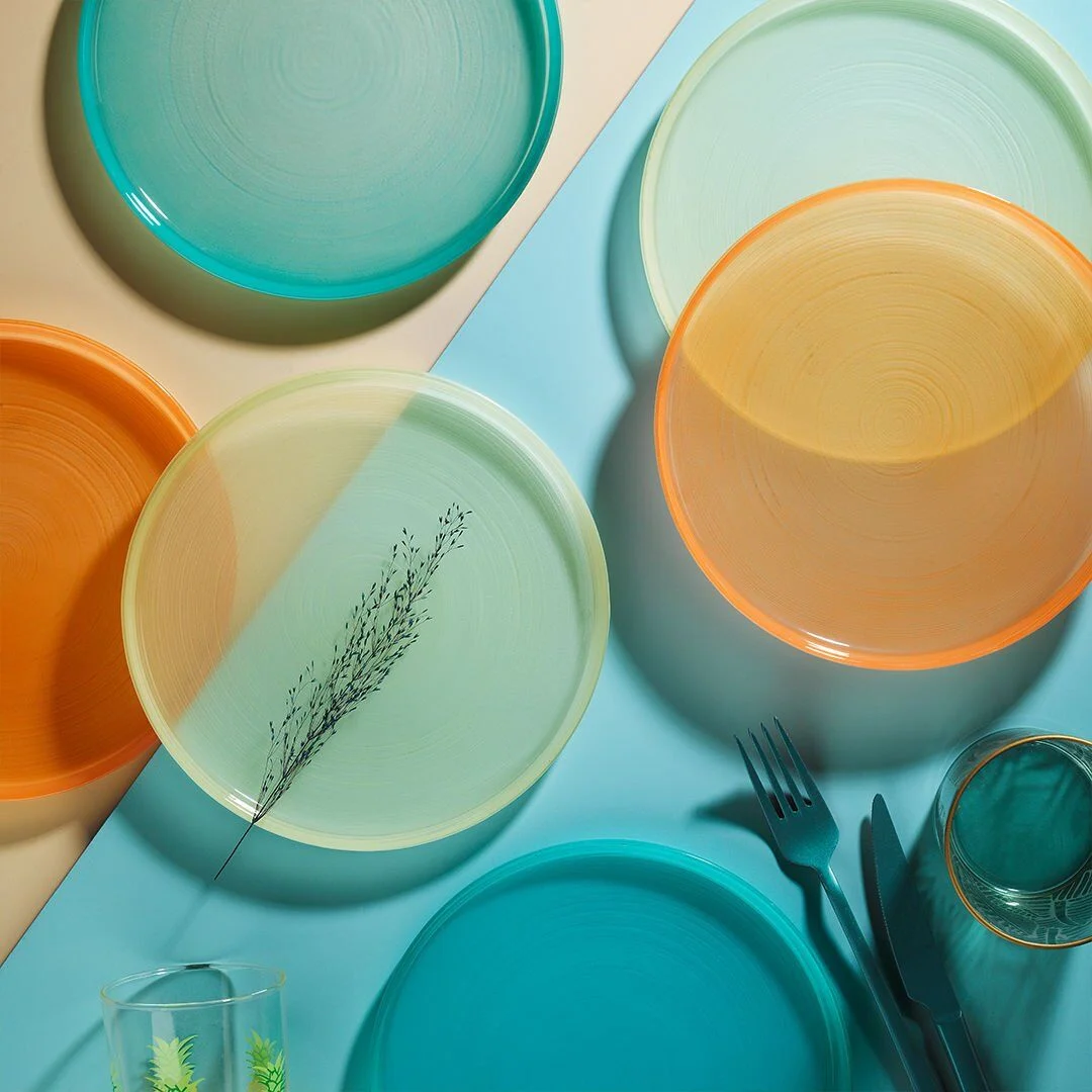 Fecra Circle 6'lı Pasta Tabağı Seti Asorti Pasta Tabağı Ölçüleri: 20 cm Parça Sayısı: 6 adet Kişi Sayısı: 6 Kişilik Malzeme: Cam Renk: Çok Renkli