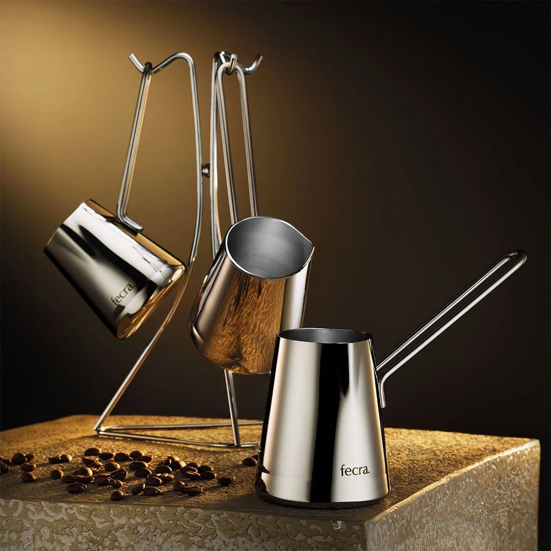 Fecra Dina Cezve Seti, estetikle kaliteyi bir araya getiriyor. 18/10 paslanmaz çelik malzeme, uzun ömürlü kullanım ve mükemmel dayanıklılık sunarak sağlıklı bir kahve deneyimi vaat eder. Zarif tasarımı ise modern mutfaklarınıza şıklık katmak isteyenler için ideal bir tercih sunar.