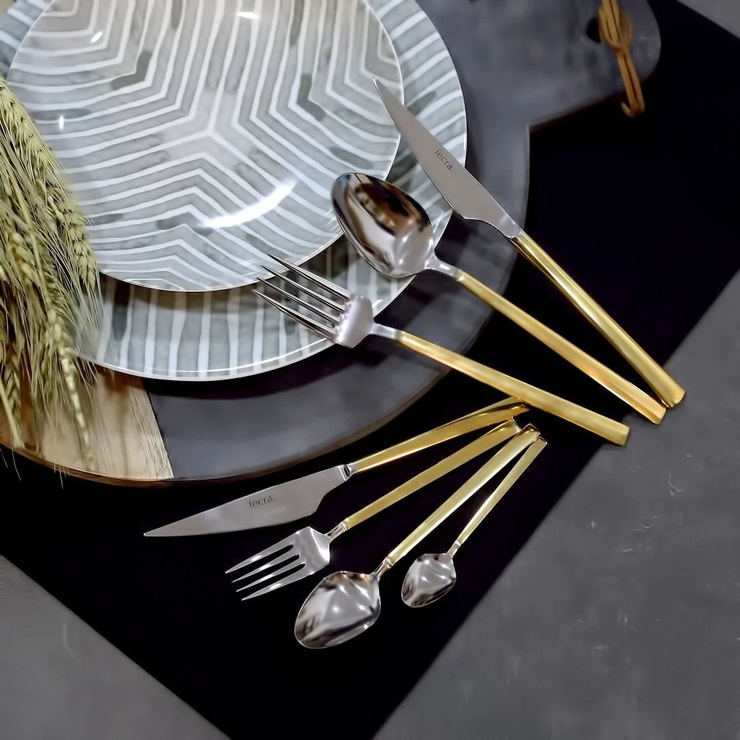 Fecra Doğa 89 Parça Altın Kaplama Çatal Kaşık Bıçak Takımı
