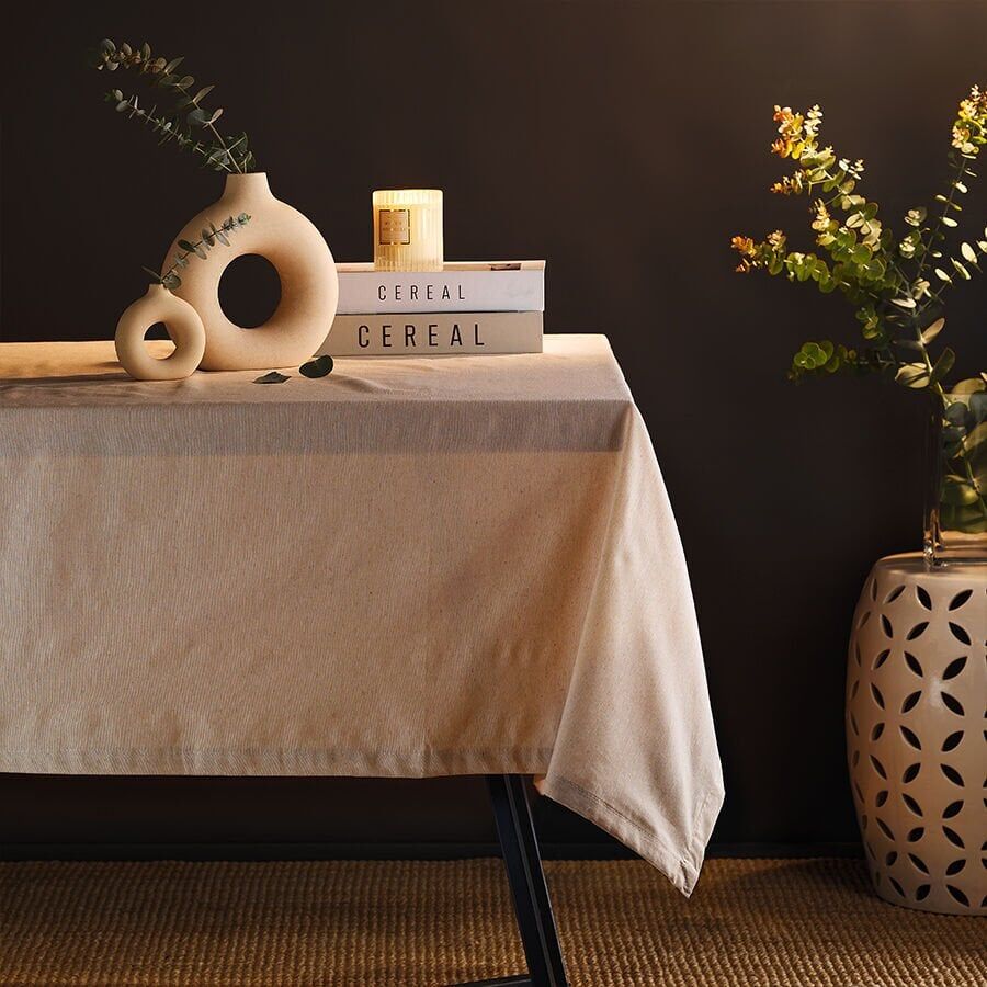 Örtü, sade ve doğal deseniyle sofistike bir zarafet sunar. Masa örtüsünün sadeliği, her türlü dekorasyonla mükemmel bir uyum sağlar.