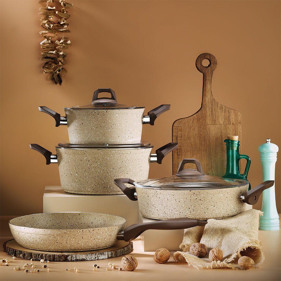 Fecra Kasrol 7 Parça Granit Tencere Seti Bej: Mutfakta Şıklık ve İşlevsellik!