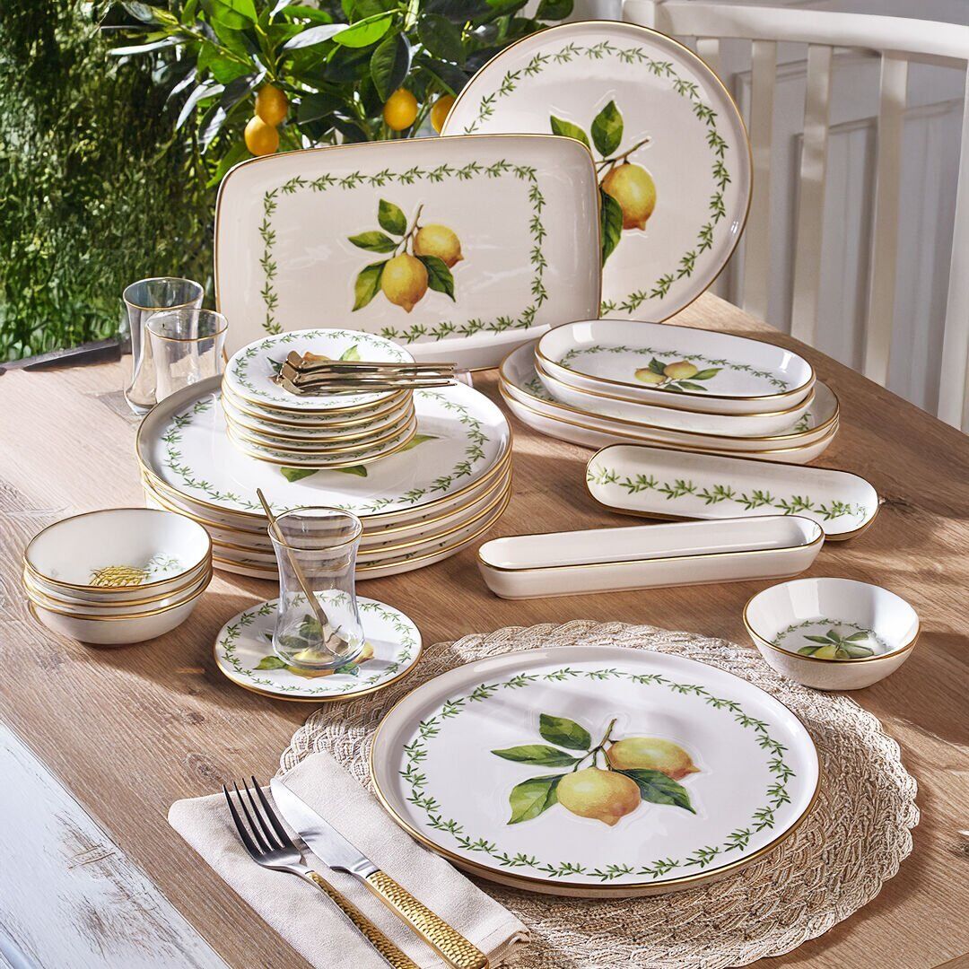 Limon motifli tasarımı ile sofralarınıza taze bir görünüm kazandırır. Gold file detayları sayesinde zarif ve modern bir atmosfer oluşturur.