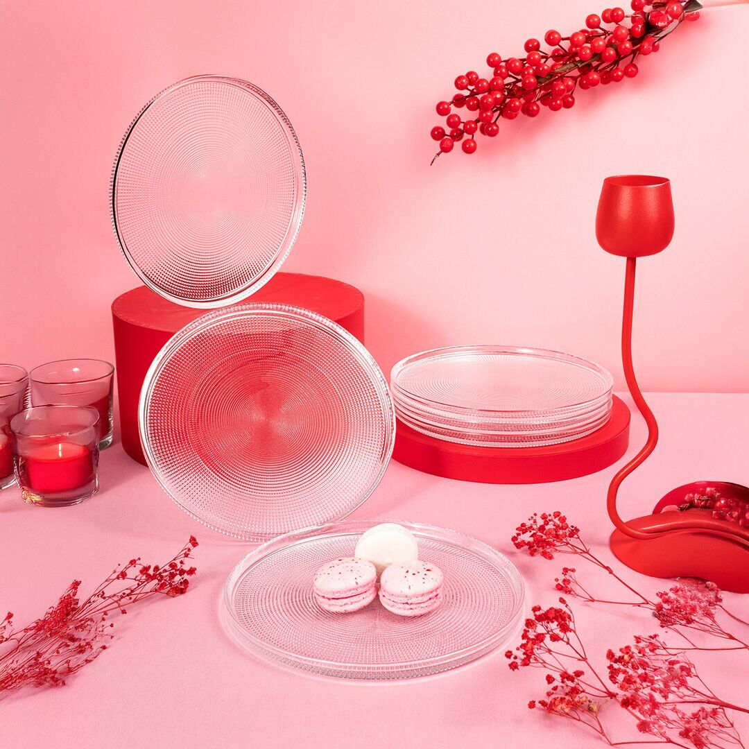 Her tabakta kullanılan özel dairesel yüzey dokusu, ışığı eşit dağıtarak sofranıza parlak ve şık bir görünüm kazandırır.