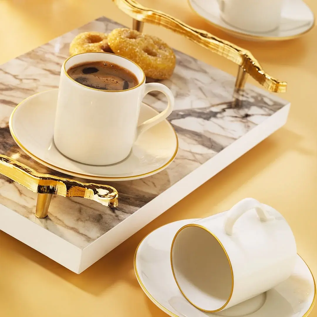 Fecra Lumin 12 Parça Kahve Fincan Takımı, estetik, lüks ve fonksiyonu bir araya getirerek kahve keyfinizi bir adım öteye taşıyor. Altın file detayları ve özel tasarımı ile her anınızı ışıltılı bir deneyime dönüştürmeye hazır.