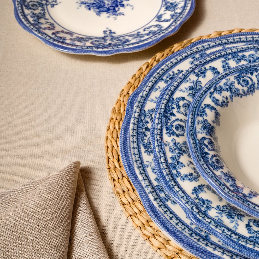 Her tabakta yer alan ince çiçek motifleri, el işçiliğini hatırlatan detaylara sahip. Desenlerdeki mavi ton geçişleri, geleneksel porselen estetiğini çağdaş bir çizgiyle harmanlıyor. Misafir sofralarında dikkat çekici bir duruş sunarken, günlük kullanımlarda da sade bir zarafet hissi veriyor.